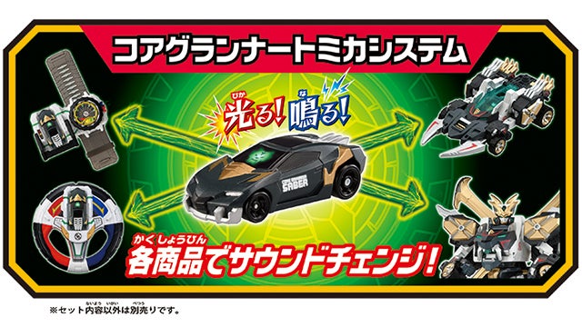 主人公のライバルカケルが、グランナーX(エックス)にシフトチェンジする(ヒーローになる)ために使用するコアグランナートミカ!